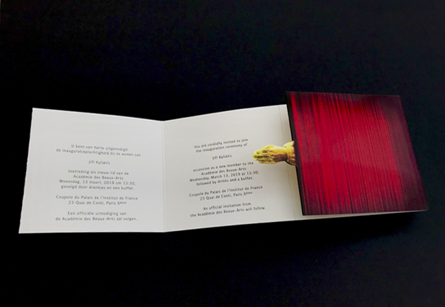 Invitation card for the guests of the ceremony designed by Jiří Kylián and René de Haan, printed by Lenticulair Benelux. Photography: Jiří Kylián.