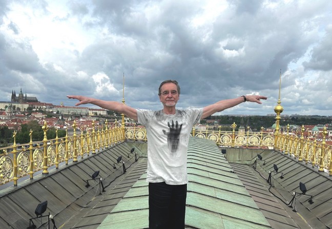 Jiří Kylián on the roof of the National theatre in, Prague, June 2024.