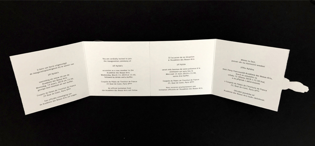 Invitation card for the guests of the ceremony designed by Jiří Kylián and René de Haan, printed by Lenticulair Benelux. Photography: Jiří Kylián.
