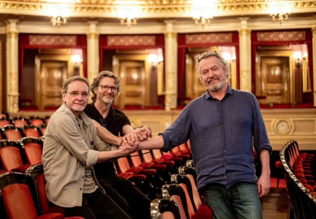 Jiří Kylián with film director Boris Paval Conen and Nils Petter Molvaer at the National theatre, Prague, June 2024.